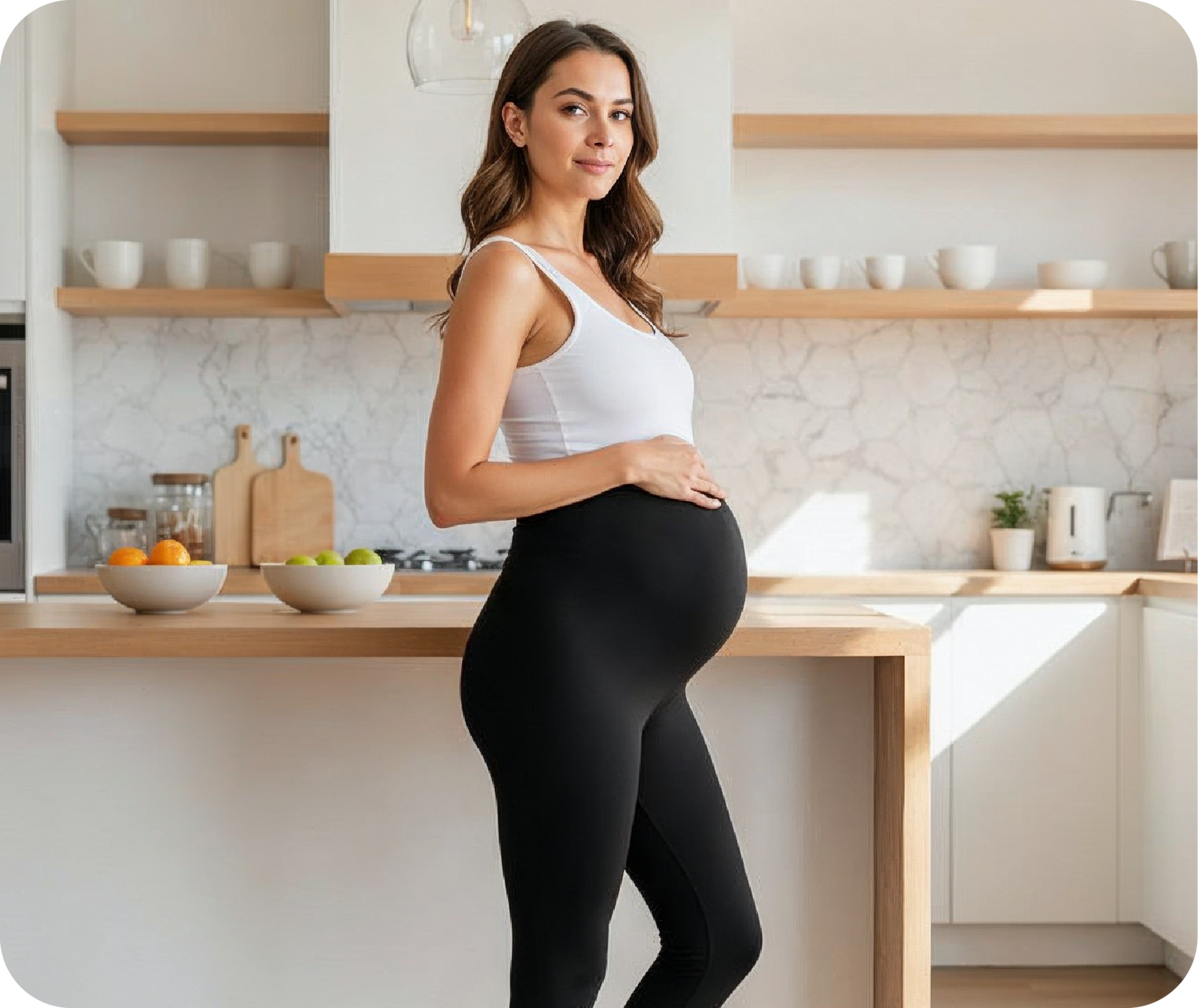 MAMÉLIA m’a redonné confiance pendant ma grossesse. Les leggings soutiennent parfaitement le ventre et mettent en valeur la silhouette. Je me sens belle, confortable et en sécurité.